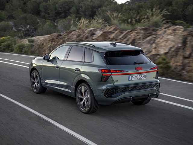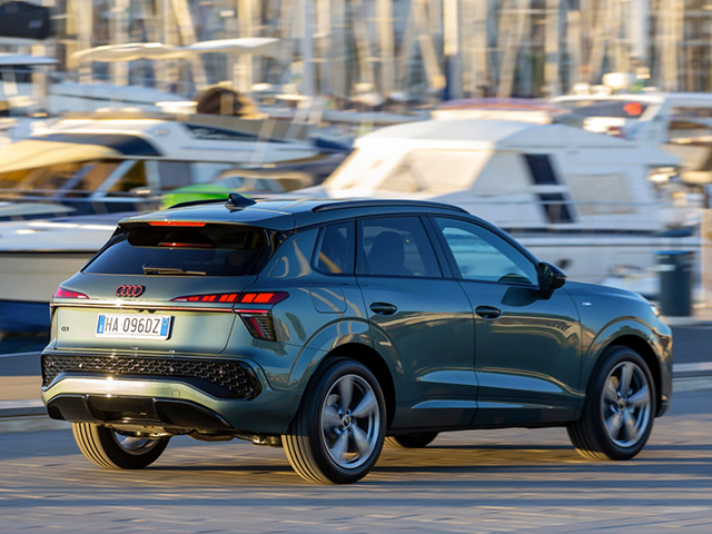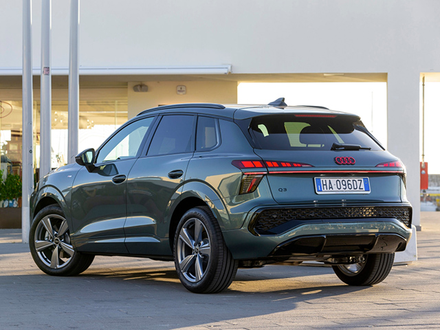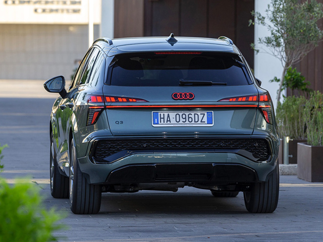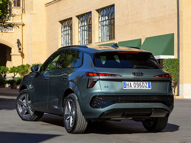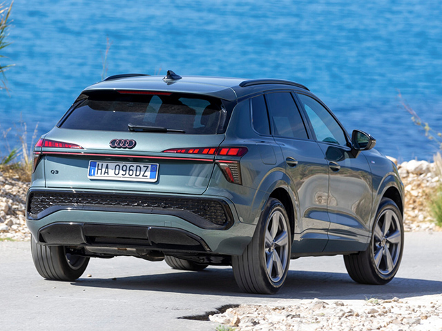 Q3 La terza generazione di Q3 spicca per il design sportivo e muscolare e gli interni caratterizzati dal palcoscenico digitale, denominato Audi digital stage, composto dall’Audi virtual cockpit da 11,9" e dallo schermo curvo da 12,8" del sistema MMI cui si aggiunge, a richiesta, l’head-up display. Il carattere innovativo della vettura è ulteriormente sottolineato dalla nuova interfaccia grafica del sistema d’infotainment, contraddistinta da una maggiore leggibilità e da superiori possibilità di personalizzazione, e dagli inediti comandi al volante. Il piantone dello sterzo integra un satellite che prevede nella sezione destra il selettore del cambio e all’estremità sinistra gli elementi di controllo delle funzioni luce e tergicristalli. Un’evoluzione che consente di ricavare spazi e vani aggiuntivi in abitacolo. Q3 spicca per versatilità, complice la possibilità di optare per la trazione anteriore o integrale quattro. Il bagagliaio ha una capienza di 488 litri, espandibile a 575 litri avanzando al massimo i sedili posteriori (scorrono in longitudine per 130 mm), mentre abbattendo il divanetto - frazionabile nel rapporto 40/20/40 e adattabile nell’inclinazione - si raggiungono i 1.386 litri.