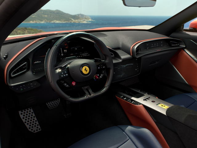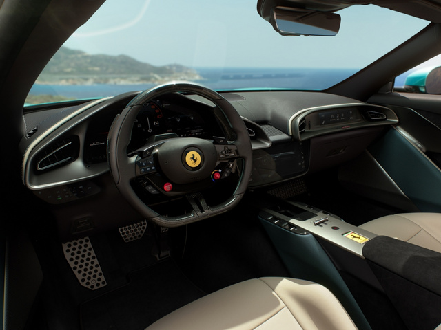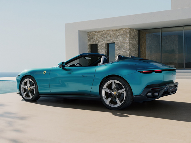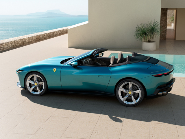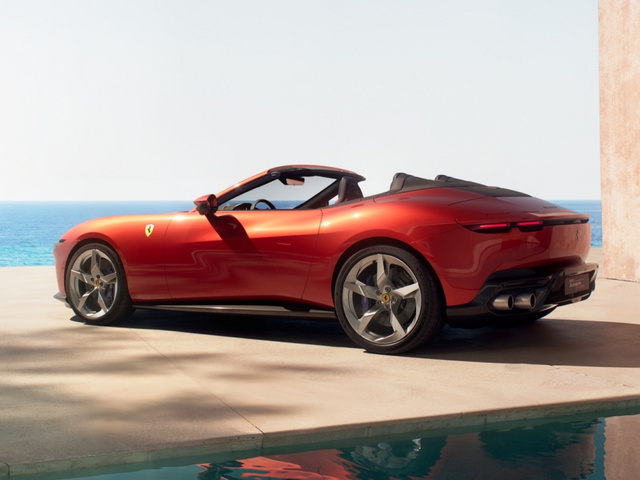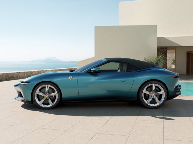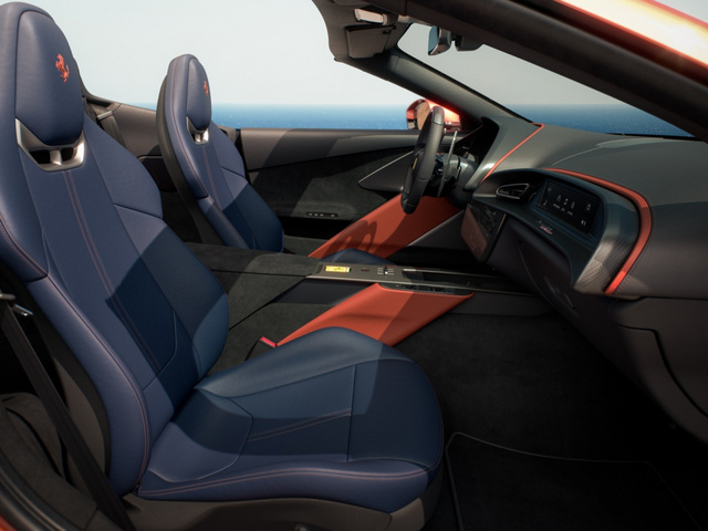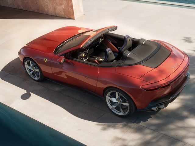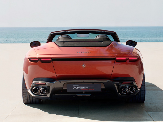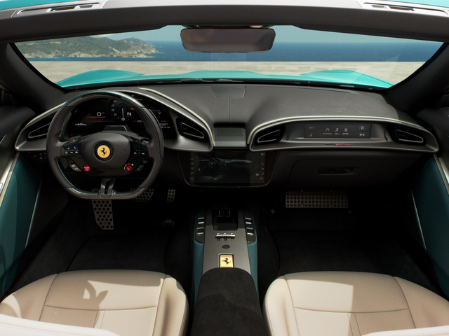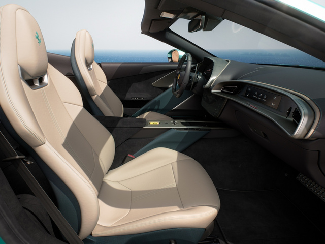 La nuova spider V8 2+ a motore centrale anteriore rappresenta il perfetto equilibrio tra prestazioni, eleganza, divertimento, facilità di guida e versatilità, che la rendono il riferimento dello stile di vita sportivo Ferrari, anche en plein air. Il progetto della Ferrari Amalfi Spider nasce dalla volontà di preservare proporzioni e volumi della Ferrari Amalfi, mantenendone la silhouette elegante e fluida anche a tetto aperto. Il soft top disponibile in tessuto sartoriale o tecnico si apre in 13,5" e fino a 60 km/h di velocità, mentre gli ingombri ridotti del tetto ripiegato dallo spessore pari a soli 220 mm permettono di massimizzare la capacità del bagagliaio: 255 litri a tetto chiuso e 172 litri a tetto aperto, con un’impostazione pensata per accompagnare la vita di tutti i giorni e i fine settimana fuori porta. L’isolamento sonoro e termico è reso possibile da un tessuto acustico a cinque strati con prestazioni termiche e di insonorizzazione allineate a quelle di un tetto rigido retrattile (RHT) Ferrari, che consente di godere del ricercato materiale di cui è composta la capote anche a tetto aperto.