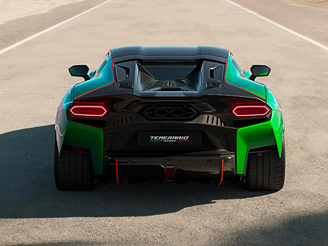 Temerario è il secondo modello della gamma Lamborghini High Performance Electrified Vehicle (HPEV) che completa l’elettrificazione della gamma. L'inedita supersportiva è equipaggiata con powertrain ibrido V8 biturbo che ridefinisce i concetti stessi di performance, piacere di guida e comfort. Il powertrain abbina un V8 biturbo a tre macchine elettriche per prestazioni di assoluto rilievo. Il design, studiato per ospitare il nuovo powertrain ibrido, contribuisce ad incrementare il carico aerodinamico soprattutto nella parte posteriore, generando una deportanza superiore del 103% rispetto al modello precedente, che arriva al +158% nella versione Alleggerita. Il pacchetto Alleggerita riduce il peso dell’auto di oltre 25 kg, grazie a componenti della carrozzeria e degli interni, migliorando l’efficienza complessiva del carico aerodinamico del 67%. La nuova trasmissione a doppia frizione a otto rapporti è più compatta, garantisce cambi marcia più rapidi; inoltre, in modalità completamente elettrica la Temerario riduce le emissioni di CO2 fino al 50% rispetto al modello precedente.