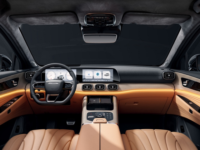 L’ammiraglia Jaecoo si presenta con una proposta tecnica di assoluto rilievo: powertrain plug-in hybrid da 428 CV e autonomia complessiva fino a 1.100 km. La motorizzazione Super Hybrid System (SHS-P), capace di offrire oltre 130 km di autonomia in modalità 100% elettrica, combina prestazioni elevate ed efficienza nei consumi. Una proposta pensata per chi cerca spazio, tecnologia e potenza senza rinunciare alla mobilità elettrificata. Con una lunghezza di 4,82 metri, il SUV si presenta con proporzioni solide e una presenza su strada imponente. Il frontale è dominato dalla grande griglia con listelli verticali, elemento identitario del brand, che conferisce al modello un carattere robusto e premium allo stesso tempo. Le superfici sono morbide e tondeggianti, con un’attenta cura dei dettagli aerodinamici, mentre il posteriore è caratterizzato da una firma luminosa a sviluppo orizzontale, con una striscia LED che collega i gruppi ottici, soluzione ormai tipica dei SUV di nuova generazione.