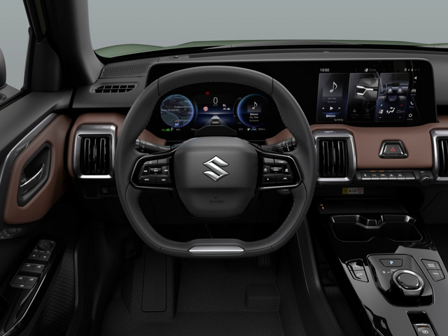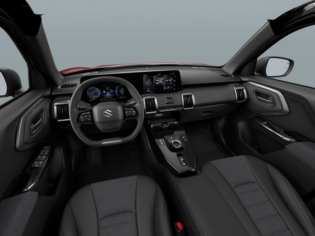 Il primo modello 100% elettrico e 4x4 Suzuki - che si inserisce all’interno di una gamma completamente elettrificata e attenta alla riduzione delle emissioni climalteranti - è una vettura che non si limita a offrire una mobilità a zero emissioni, ma porta con sé l’essenza autentica del DNA del brand: versatilità, piacere di guida e un’anima pensata per l’avventura anche in 4x4. La carrozzeria presenta un design distintivo, definito da linee scolpite che comunicano potenza e modernità e le proporzioni risultano robuste, grazie agli pneumatici di grande diametro e dal passo lungo. Il design unisce dettagli tecnologici come il frontale senza griglia e i fari Matrix LED a tre punti a un aspetto solido, pensato per affrontare ogni tipo di percorso. L’abitacolo è stato progettato per offrire un’esperienza premium, pratica e intuitiva. Pensata per famiglie e viaggiatori attivi, la e Vitara offre ottima abitabilità interna e un bagagliaio versatile e modulabile grazie ai sedili posteriori scorrevoli di 160 mm che aumentano la sua capacità di oltre il 30%